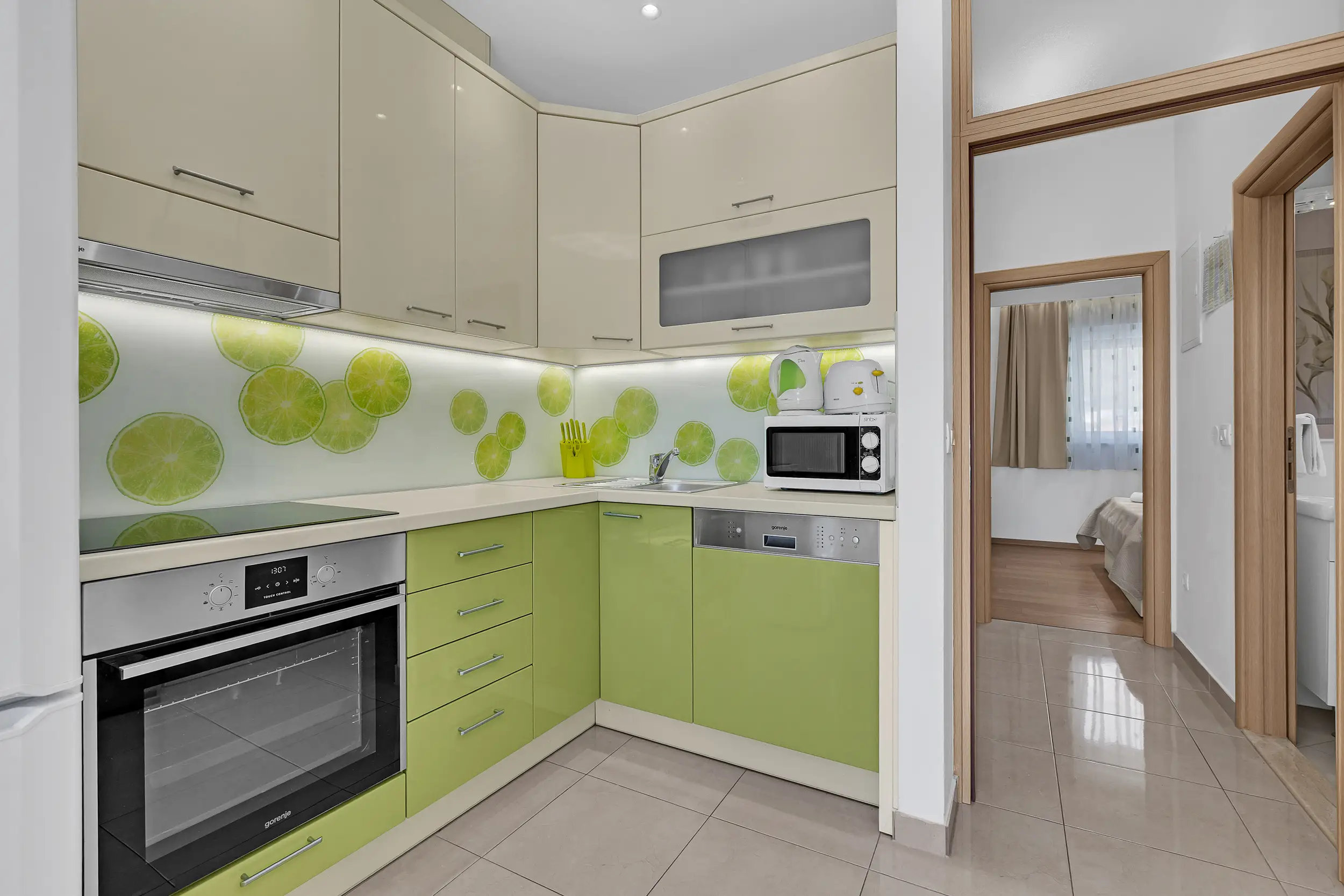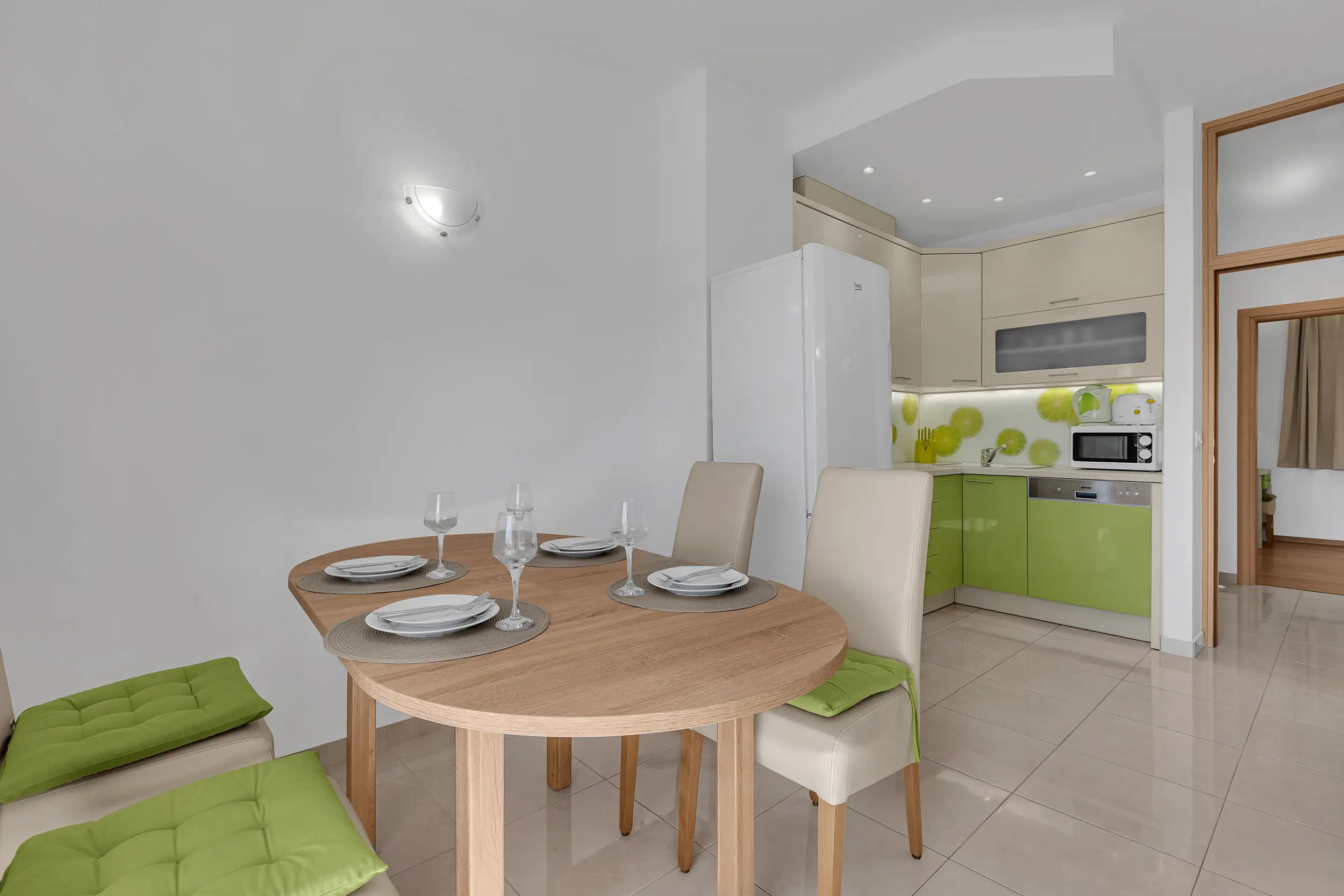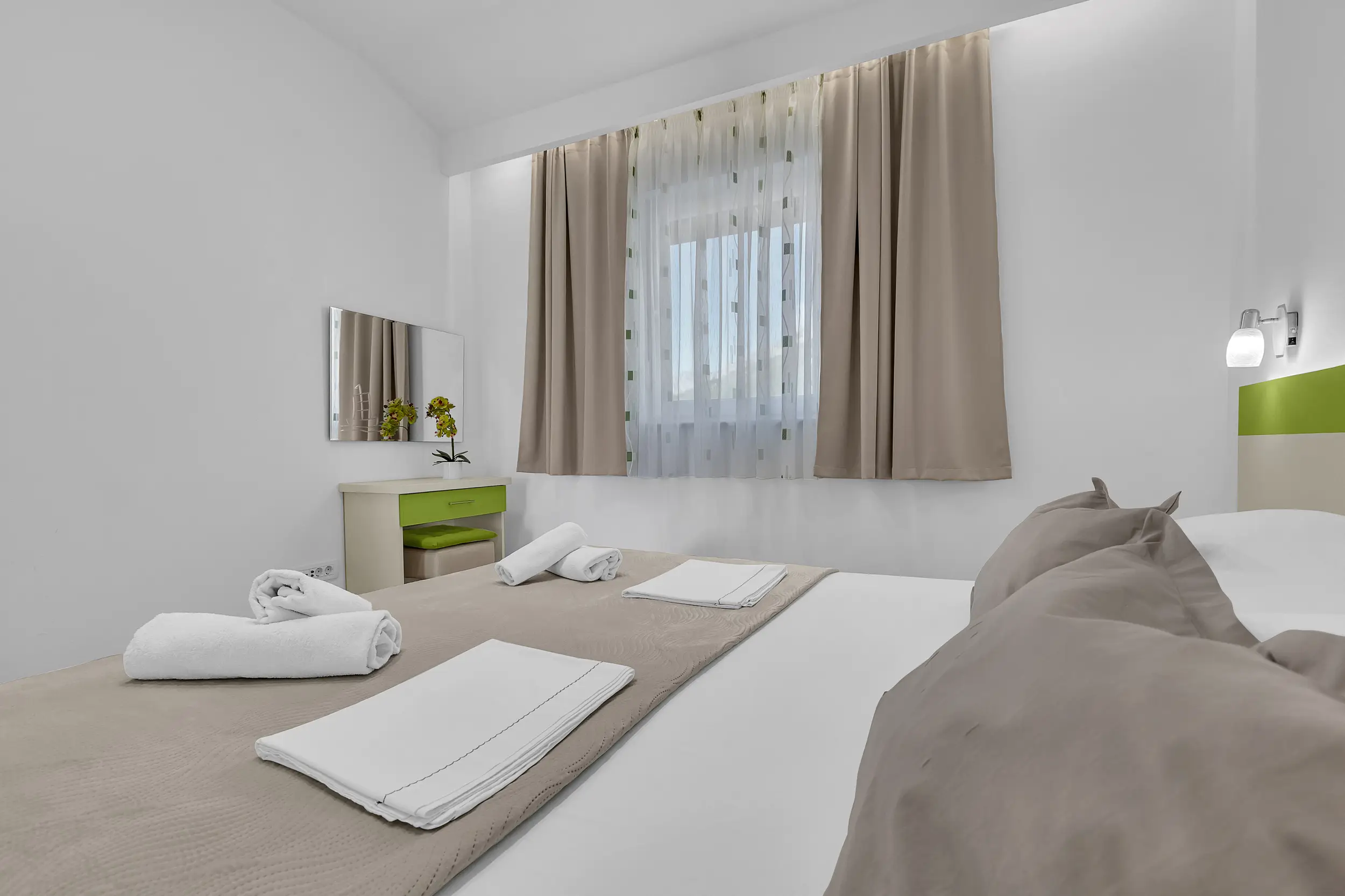 Ovi moderno uređeni apartmani idealni su za smještaj do 4 osobe. Sastoje se od spavaće sobe s bračnim krevetom, prostrane kupaonice s velikim tušem, potpuno opremljene kuhinje s blagovaonicom te dnevnog boravka s klima uređajem. U dnevnom boravku nalazi se udoban kauč na razvlačenje pogodan za još dvije osobe ili djecu, a gostima je na raspolaganju i neograničen Wi-Fi.