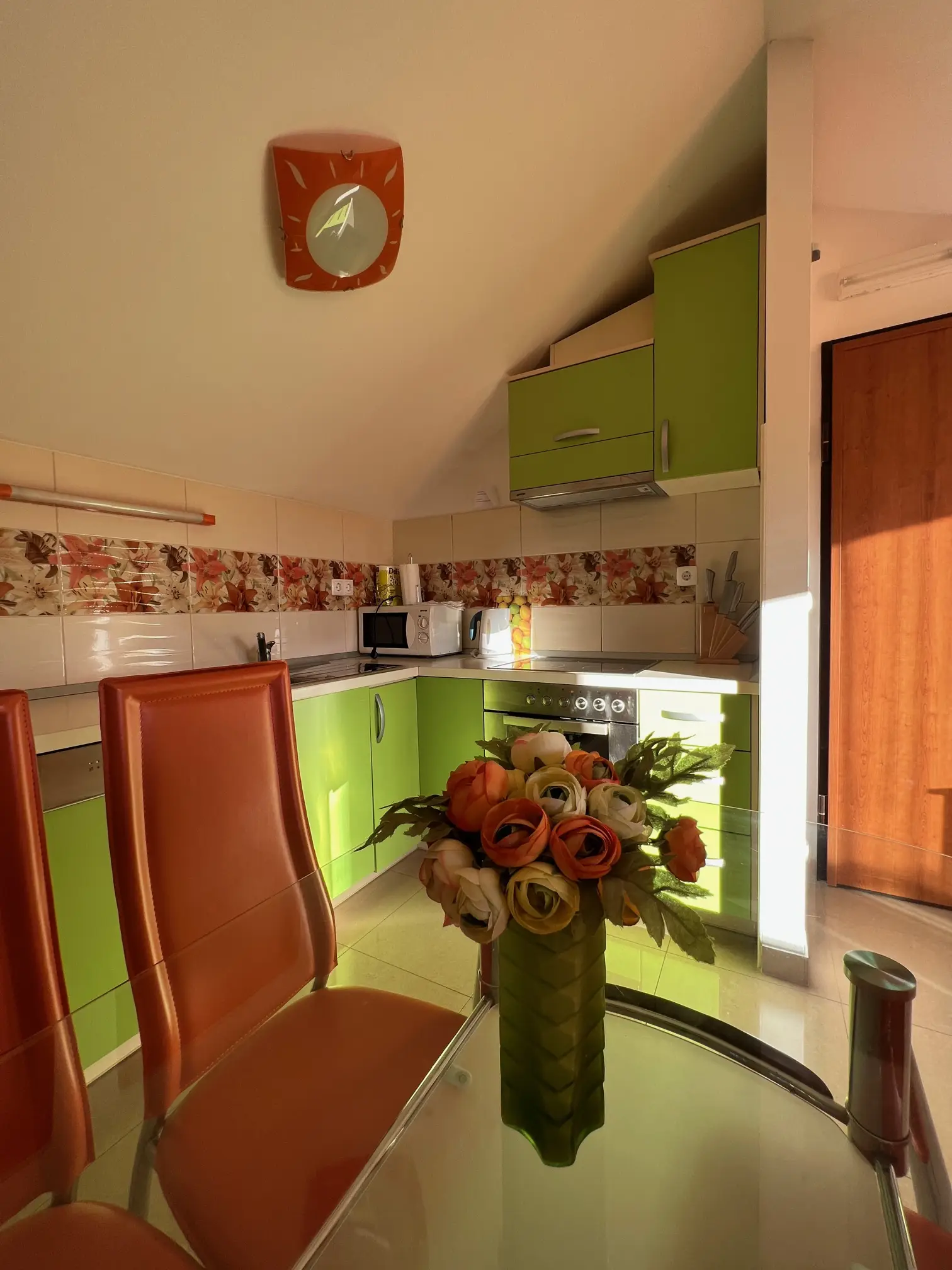 Apartman A1 prostire se na dvije etaže i može ugostiti do 6 osoba. Na gornjoj etaži nalazi se prostrana spavaća soba s bračnim krevetom i modernom kupaonicom, potpuno opremljena kuhinja s blagovaonicom te dnevni boravak s klima uređajem, TV-om i udobnim kaučem na razvlačenje za dvije osobe. Spiralnim stepenicama dolazi se na donju etažu gdje se nalazi druga moderna spavaća soba s bračnim krevetom, klima uređajem i TV-om, dodatna kupaonica s perilicom rublja te zaseban WC, što gostima pruža dodatnu udobnost i privatnost tijekom boravka. Roštilj i drveni vanjski stol i klupe, bazen, ležaljke i suncobrani.