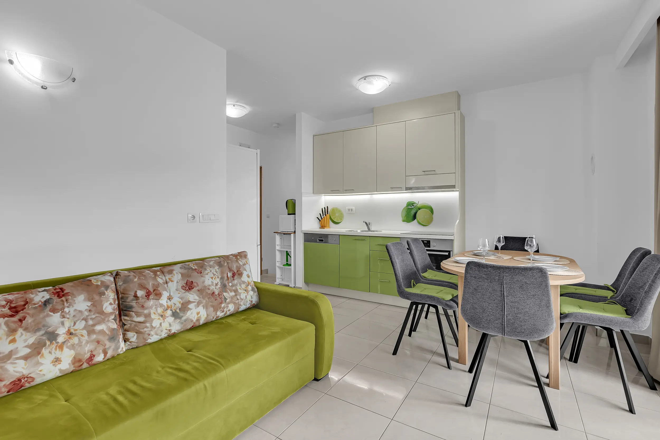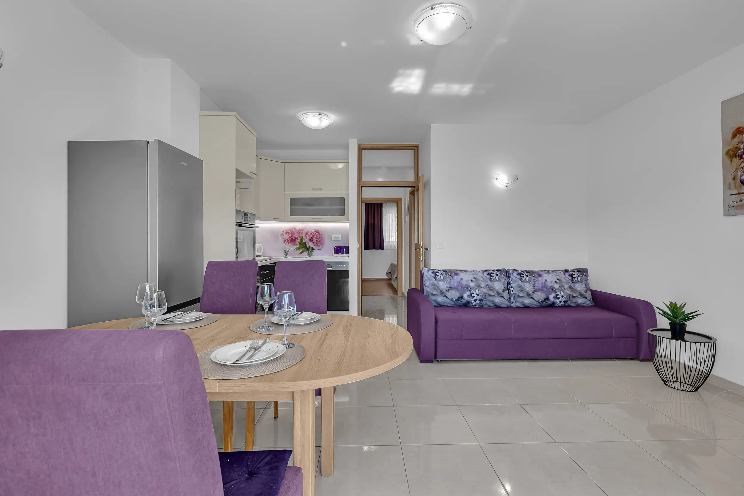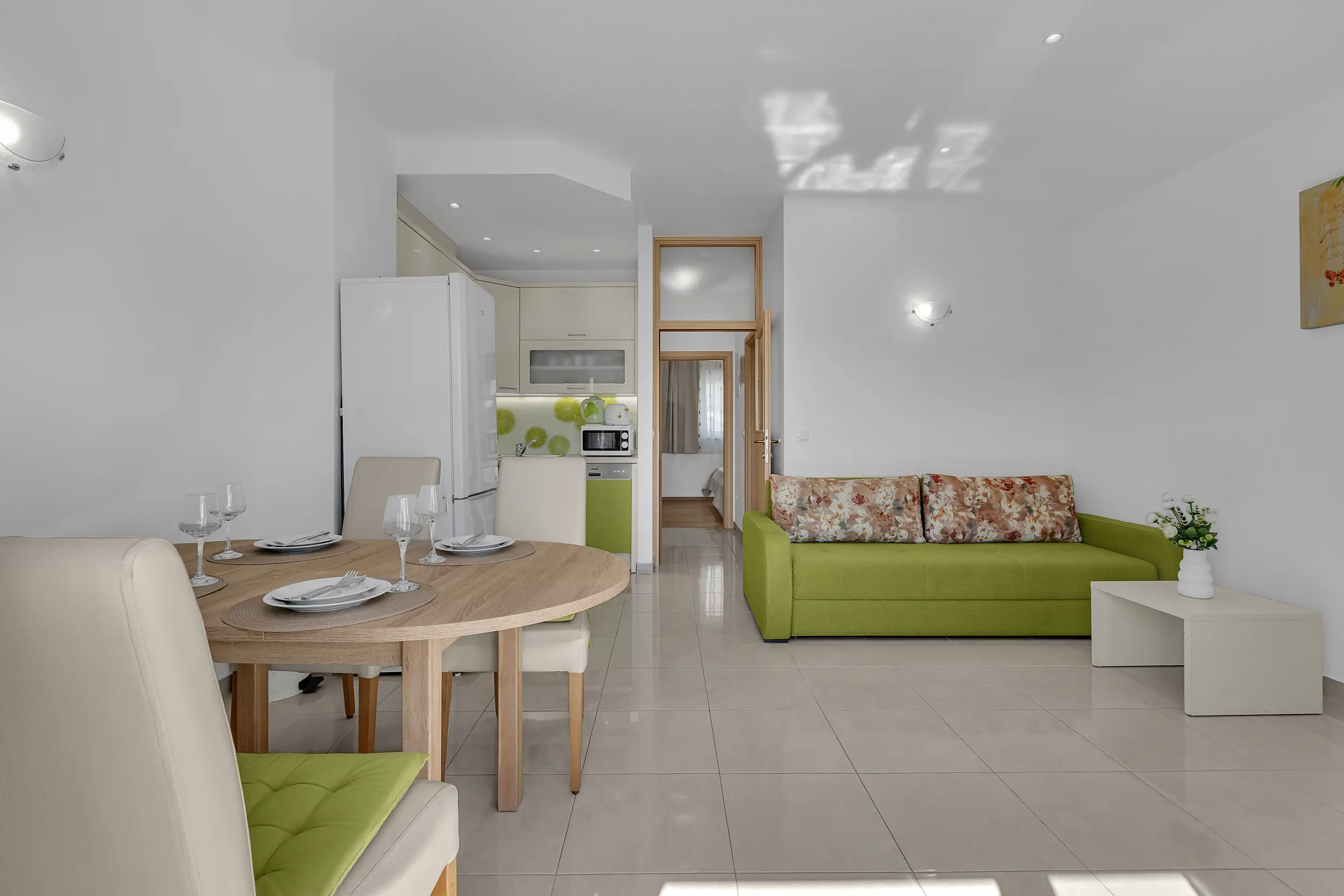 Ovi moderno uređeni apartmani idealni su za smještaj do 4 osobe. Sastoje se od spavaće sobe s bračnim krevetom, prostrane kupaonice s velikim tušem, potpuno opremljene kuhinje s blagovaonicom te dnevnog boravka s klima uređajem. U dnevnom boravku nalazi se udoban kauč na razvlačenje pogodan za još dvije osobe ili djecu, a gostima je na raspolaganju i neograničen Wi-Fi.