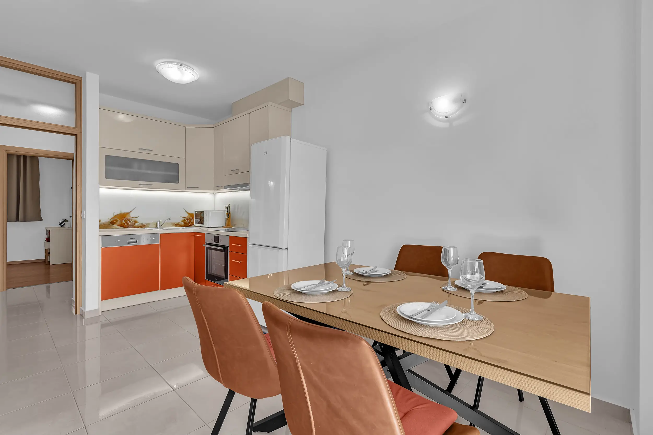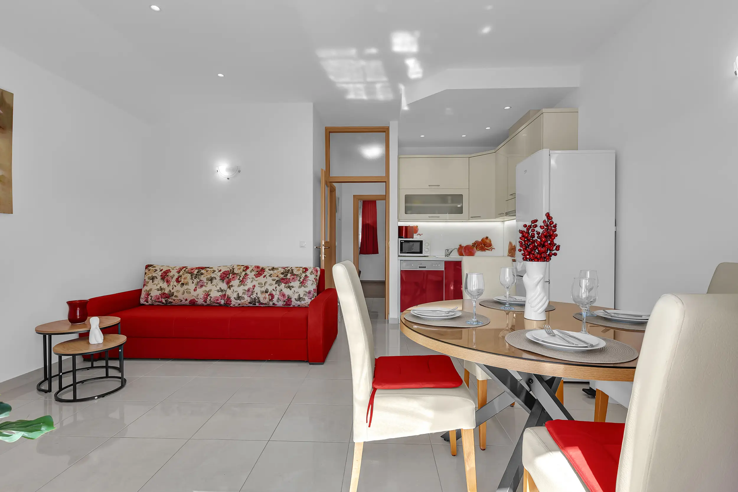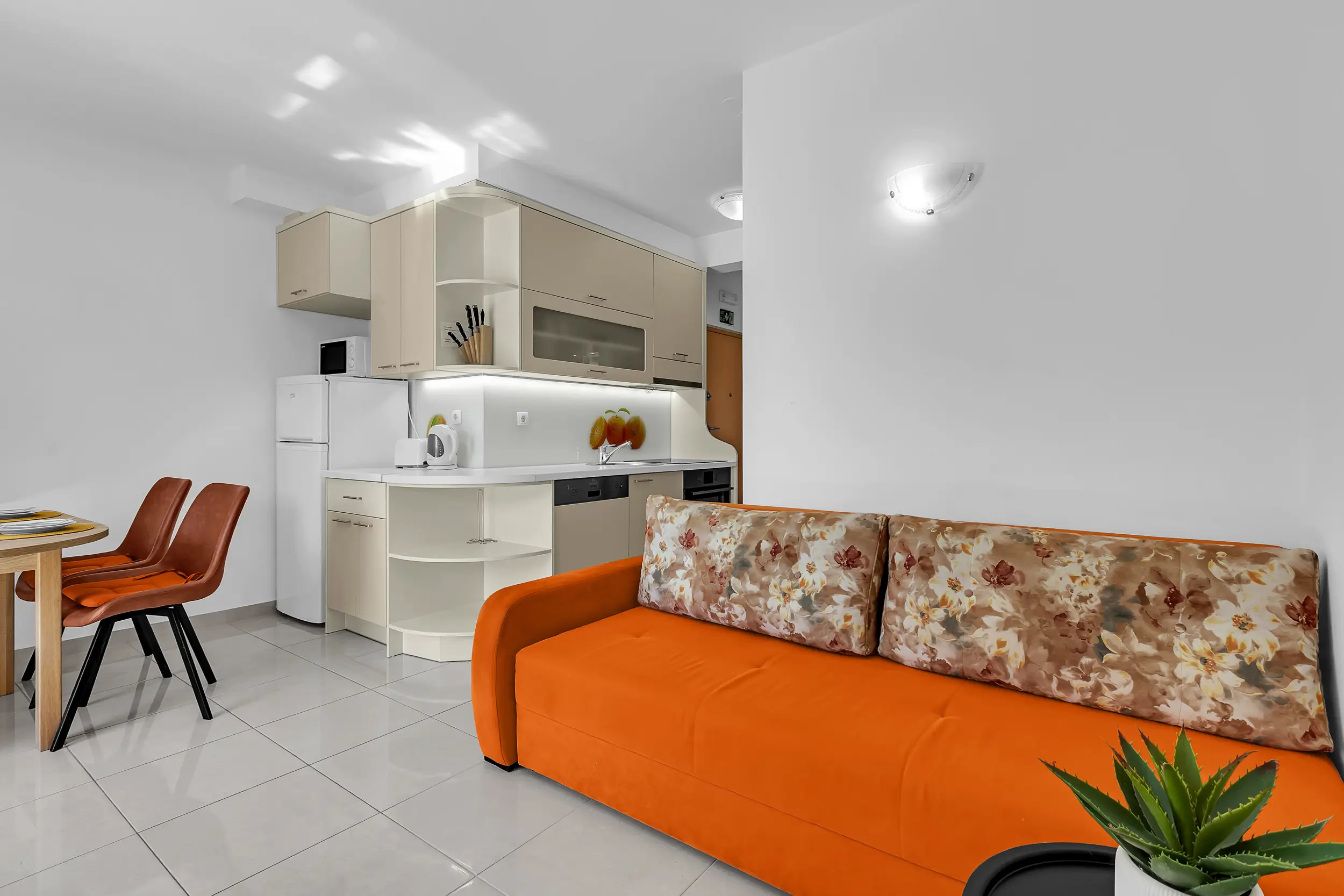 Ovi moderno uređeni apartmani idealni su za smještaj do 4 osobe. Sastoje se od spavaće sobe s bračnim krevetom, prostrane kupaonice s velikim tušem, potpuno opremljene kuhinje s blagovaonicom te dnevnog boravka s klima uređajem. U dnevnom boravku nalazi se udoban kauč na razvlačenje pogodan za još dvije osobe ili djecu, a gostima je na raspolaganju i neograničen Wi-Fi.