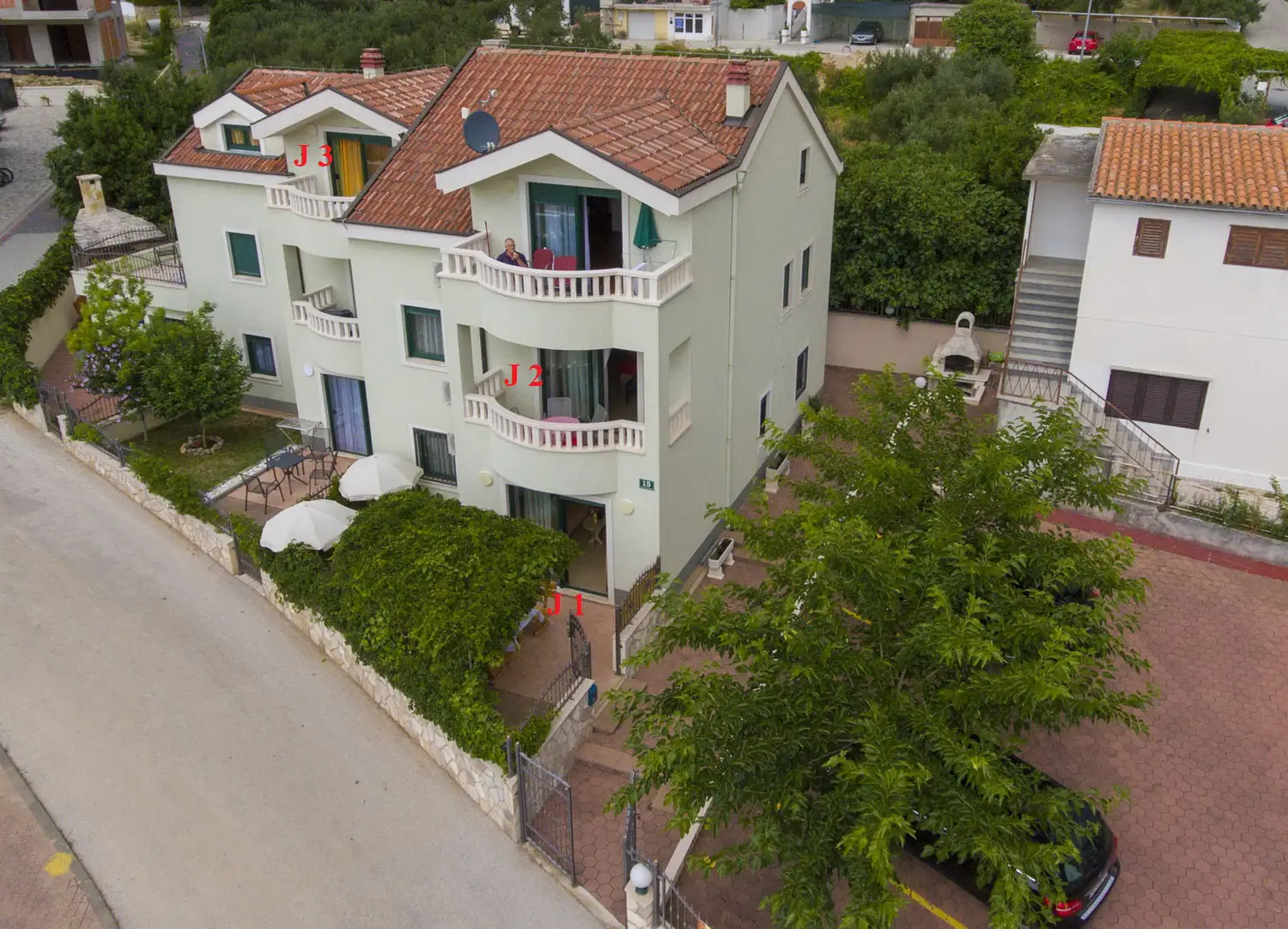 Apartman Jelena 2 smješten je na prvom katu objekta i može ugostiti do 6 osoba (4 odrasle osobe i 2 djece). Apartman ima dvije spavaće sobe – jednu s bračnim krevetom te drugu s dva odvojena kreveta koja se po potrebi mogu spojiti. U dnevnom boravku nalazi se kauč na razvlačenje koji omogućuje smještaj za još dvoje djece. Gostima su na raspolaganju dvije kupaonice te potpuno opremljena kuhinja s blagovaonicom za ugodan i praktičan boravak. Pogled na more. Roštilj kraj kuće.